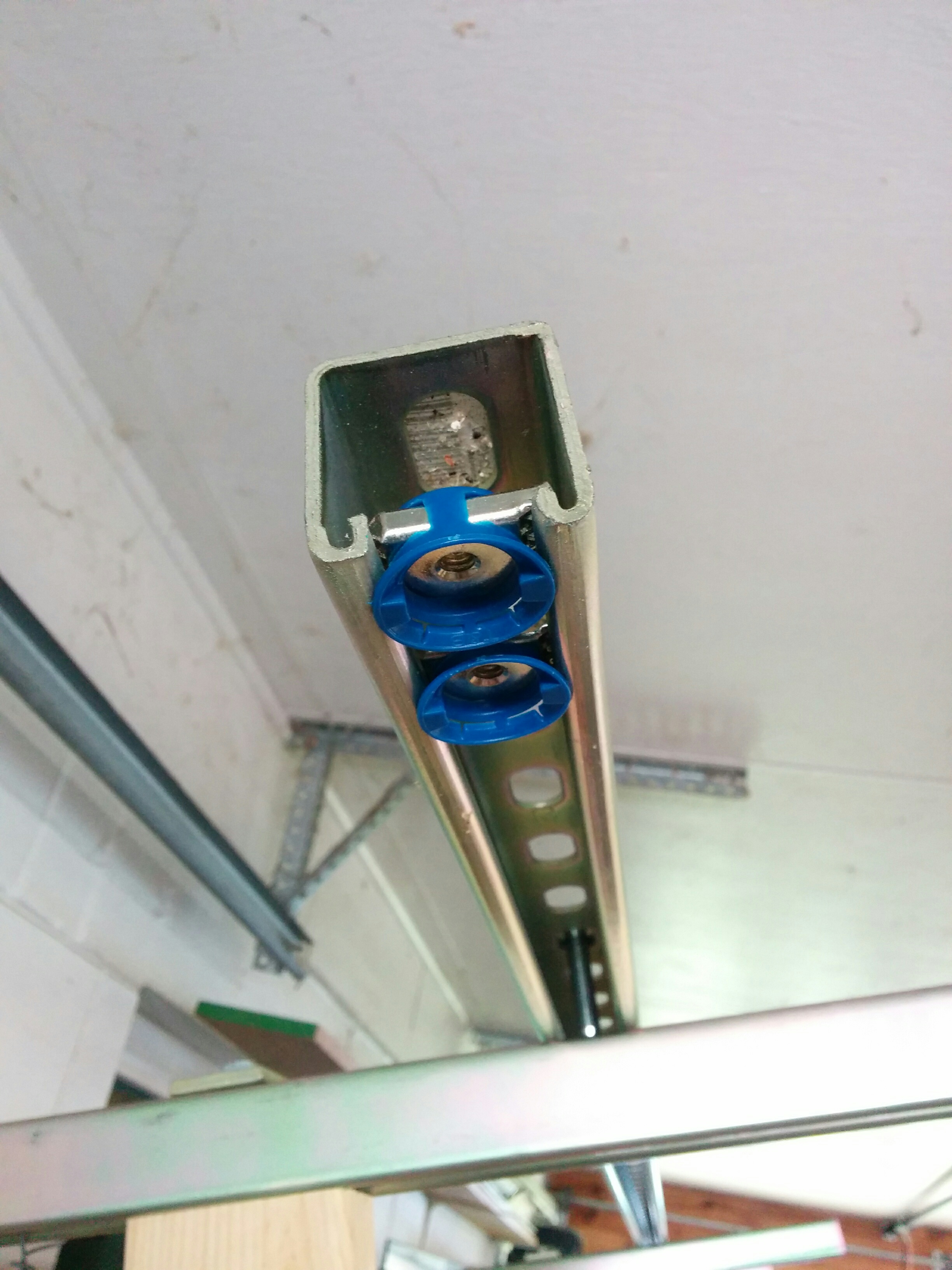 I considered buying a shorter screw to keep the plastic idler from crawling up the screw, but if I ever want to manually adjust the chain position on the sprocket all I need to do is remove the binder clip and slip the plastic idler up out of the way, so I’m leaving it as-is for now. I also paid Lowes an outrageous $5 for a set of two blue plastic end caps to make the end of my superstrut look nice.