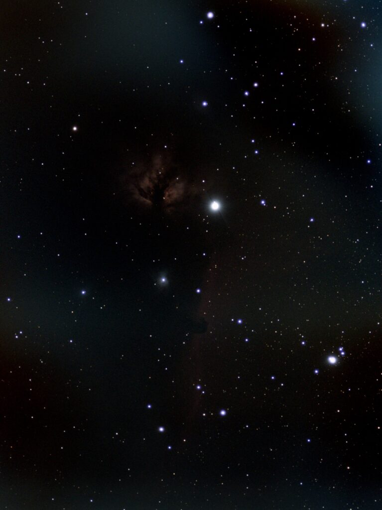 Flame nebula as captured by the Vespera 1. (optional $400 DB filter NOT installed) Larger Mosasic area, including the horsehead nebula