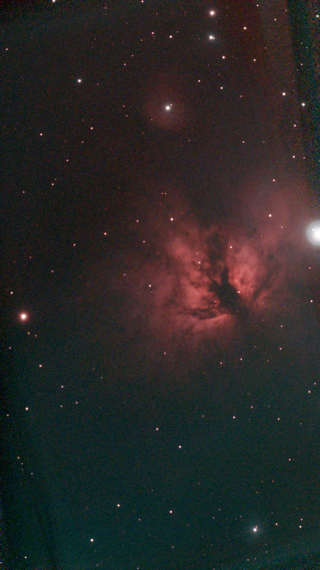 Flame nebula as captured by the Vespera 1. (optional $400 DB filter NOT installed) Larger Mosasic area, including the horsehead nebula